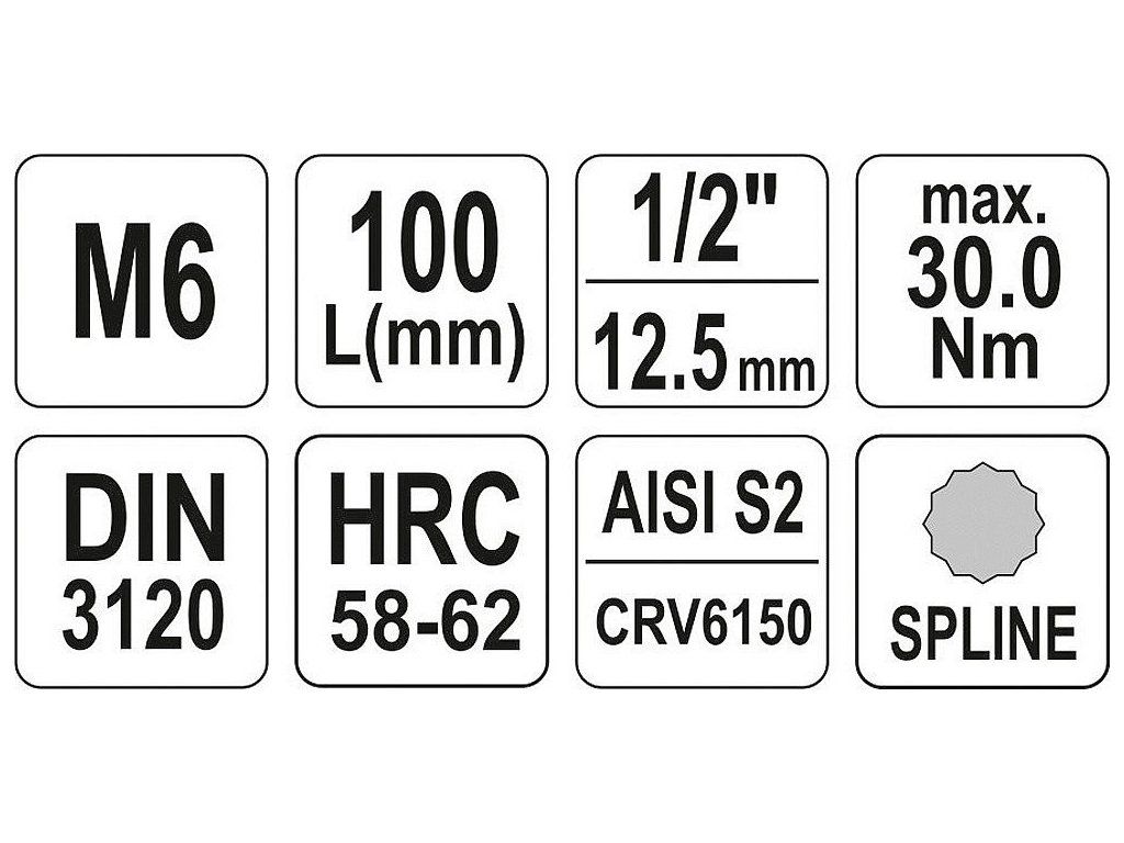 Profesionální šestihranný bit Vícezubý (SPLINE) pro 1/2" ráčnu, neboli nástrčná hlavice s bitem tisícihran (dvanáctihran / XZN) M6.