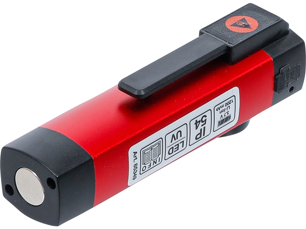 Hlavní světlo, horní světlo, UV světlo, výdrž 3 - 4,5 hod, nabíjecí, magnetická spona.