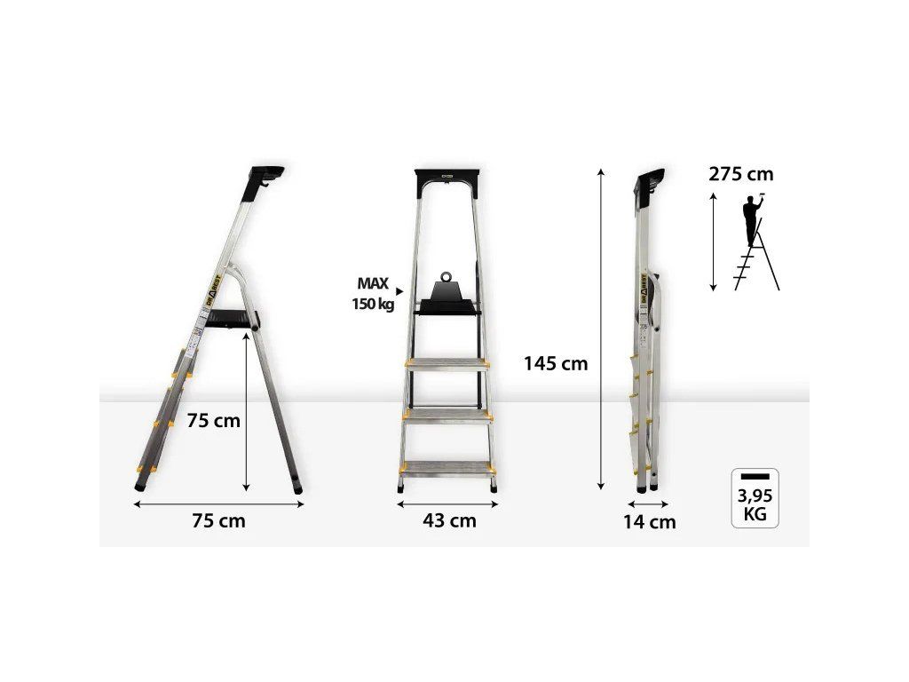 Rozměry složeného žebříku: 145 × 43 × 12 cm
