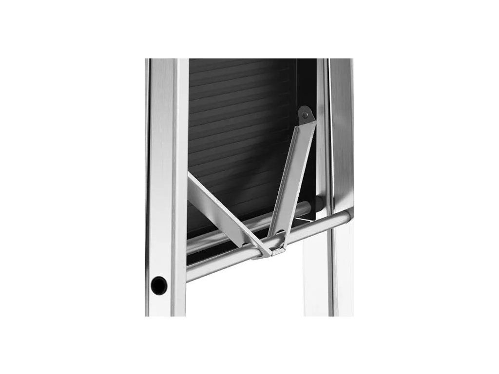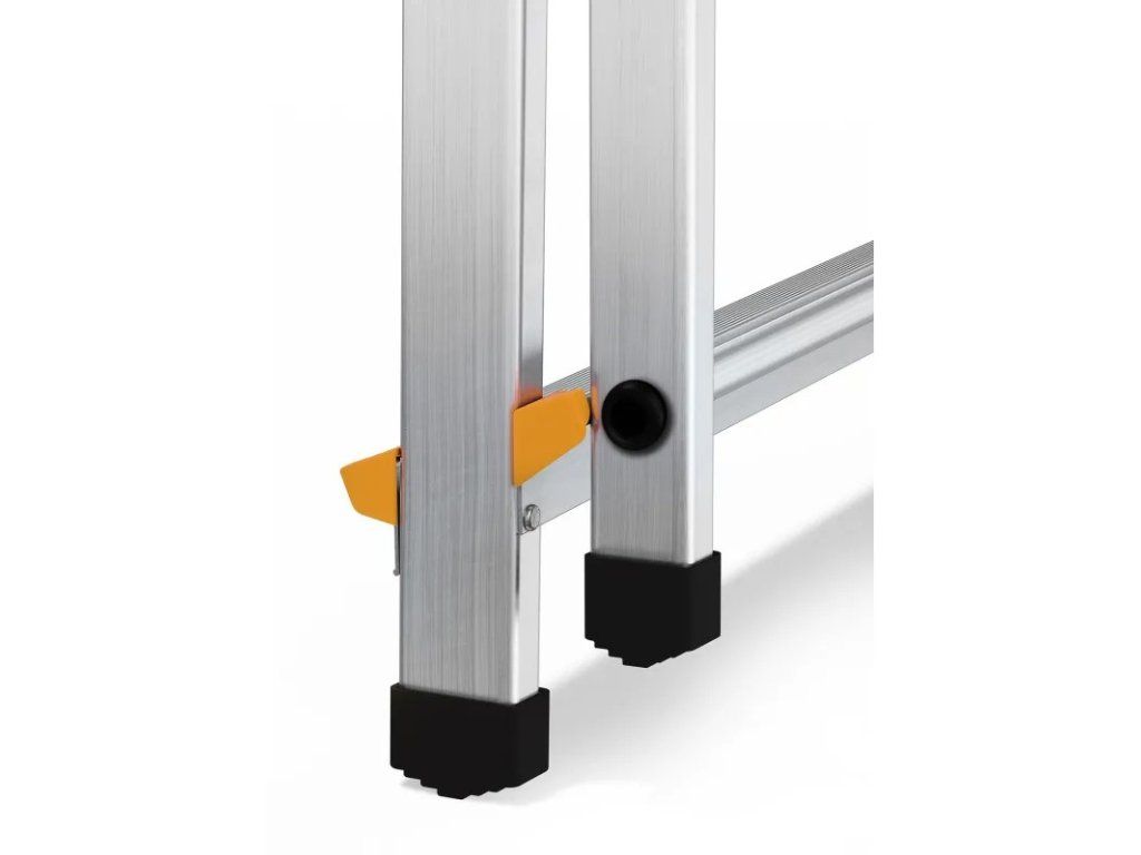 Protiskluzové nášlapy a pevné plastové zakončení nožek navíc zajišťují, že žebřík pevně drží i na hladkém nebo nerovném povrchu.