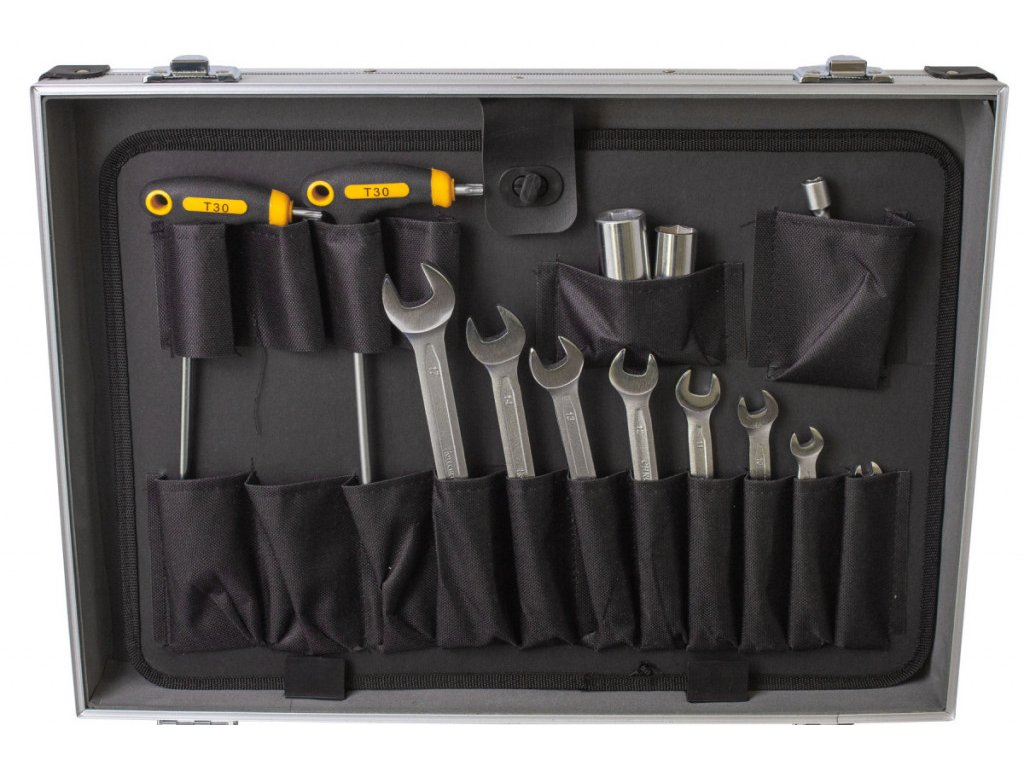 Kapsy u vyjímatelné desky jsou nejvhodnější na skladování různých druhů klíčů, nástavců, atd. Do skladovacího prostoru si můžete uložit např.: kladivo, své oblíbené šroubováky nebo kleště, různé nástrčné klíče či sadu bitů a vrtáků.