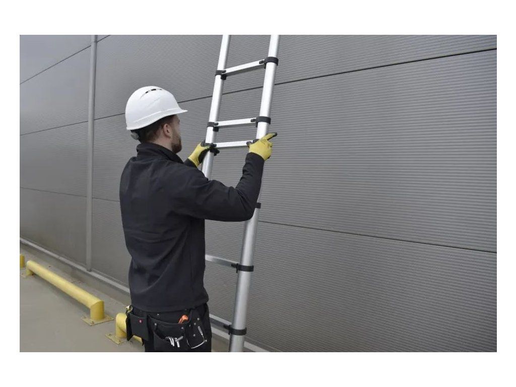 Pracovní výška žebříku se vztahuje k nejvyšší úrovni, kterou můžete dosáhnout, když na něm stojíte. U teleskopického žebříku určuje pracovní výška maximální výšku, které lze dosáhnout při úplném vysunutí a zajištění žebříku.