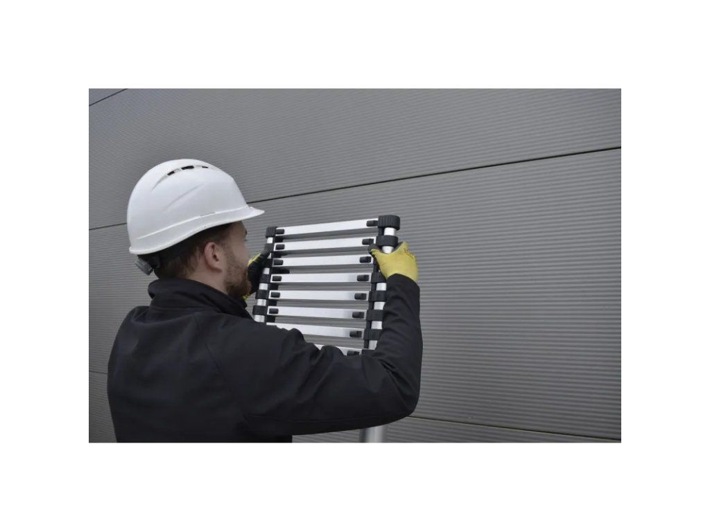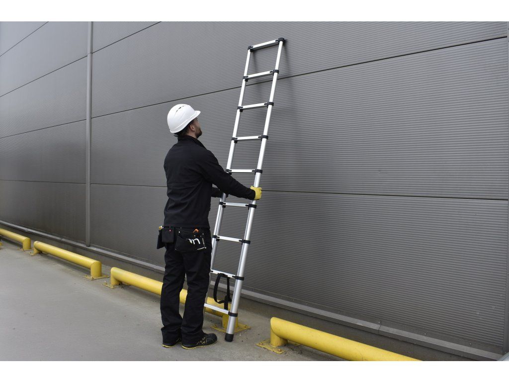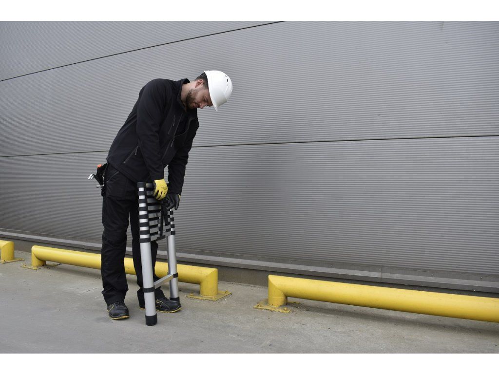 Pracovní výška žebříku se vztahuje k nejvyšší úrovni, kterou můžete dosáhnout, když na něm stojíte. U teleskopického žebříku určuje pracovní výška maximální výšku, které lze dosáhnout při úplném vysunutí a zajištění žebříku.
