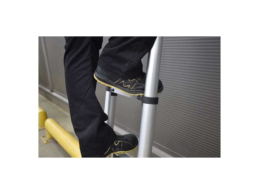 Žebřík je vyroben z odolného hliníku, který zajišťuje dlouhou životnost, lehkost a nosnost až 125 kg.