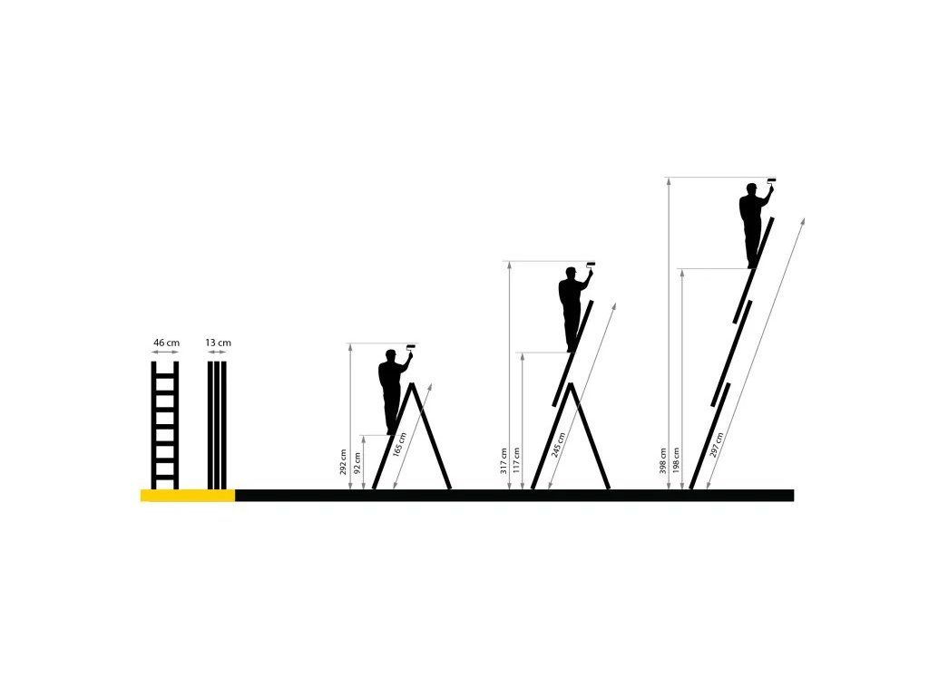 Je možné jej používat ve více polohách – jako klasický opěrný žebřík, volně stojící variantu nebo dokonce přizpůsobit pro práci na schodišti.