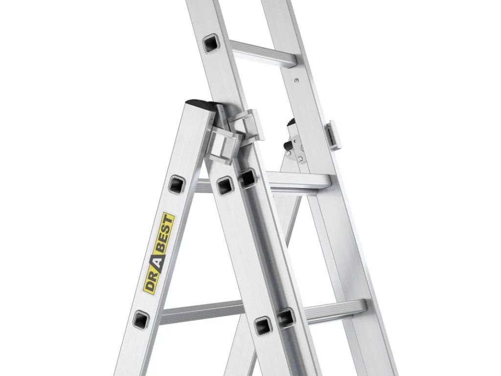 - Multifunkční provedení 3v1 – lze používat opřený, samostatně stojící nebo jako výsuvný žebřík