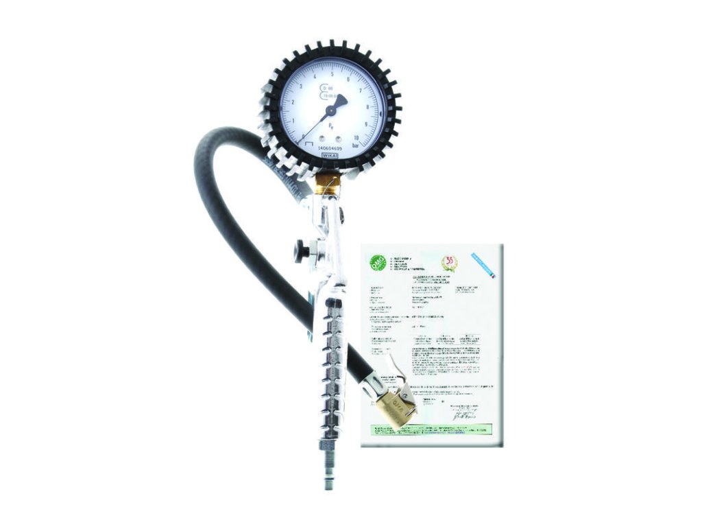 Hustič pneu s manometrem OMG73 a rozsahem měření 0 - 10 bar.