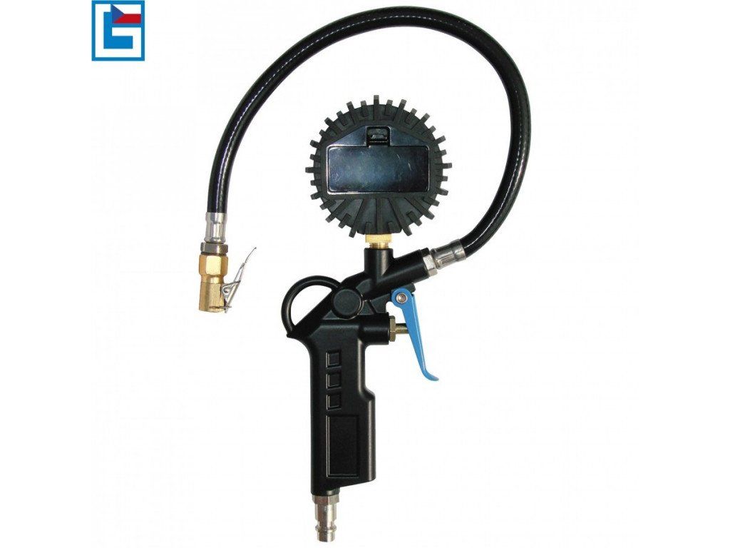 Konstrukce: rukojeť/korpus hustilky z tlakově litého hliníku, manometr s ochrannou manžetou, ventil pro odpouštění nadměrného tlaku,