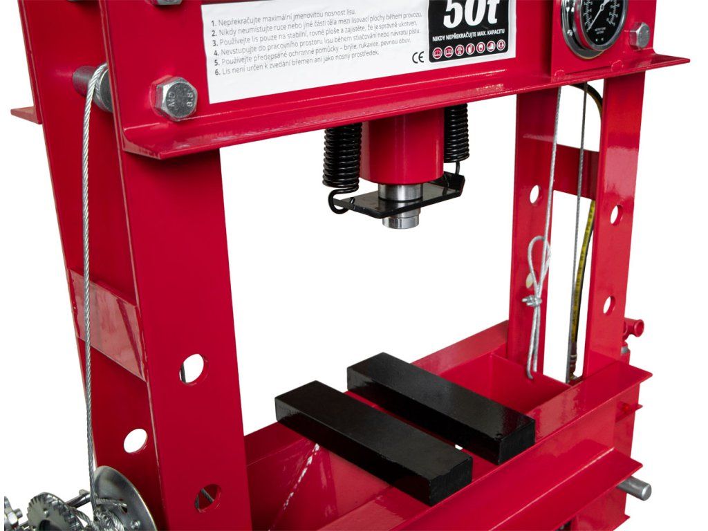 STANDARDSilný hydraulický lis s nosností 50 tun navržený pro nejnáročnější lisovací práce v autoservisech a průmyslových provozech.