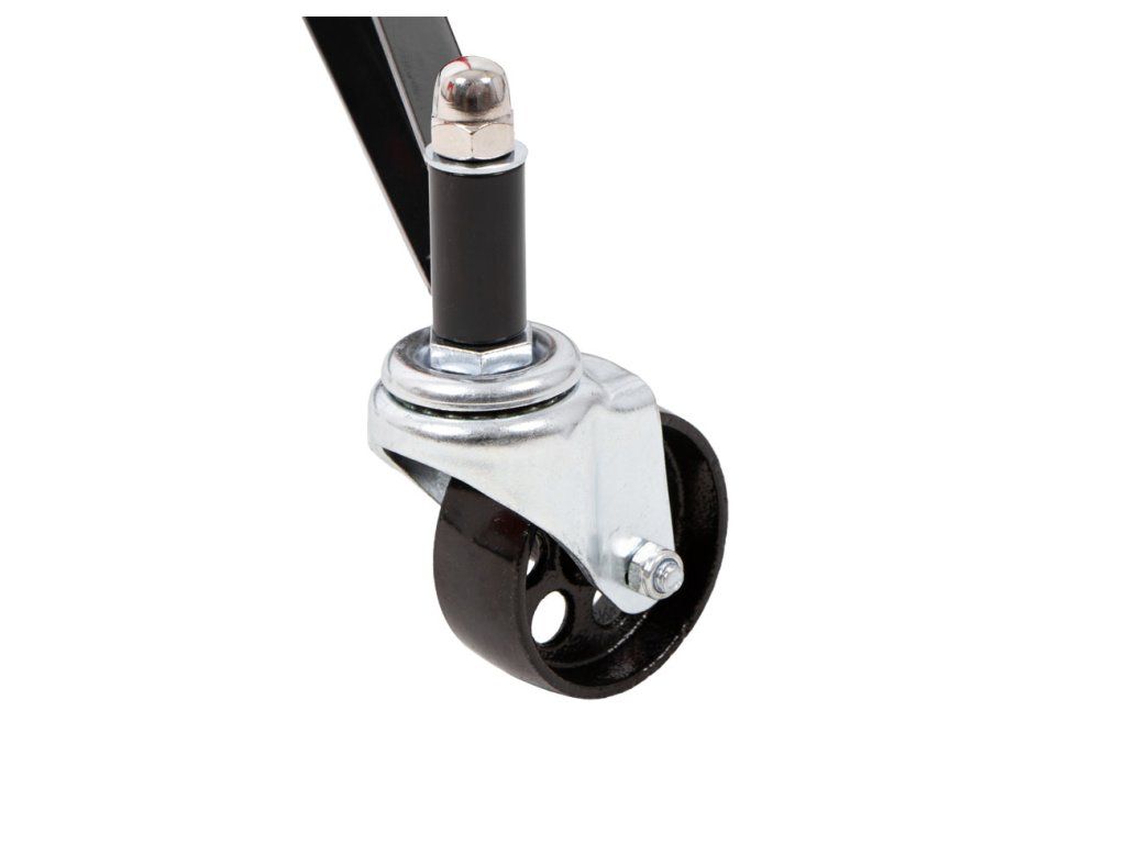 Konstrukce je tvořena ocelovým rámem s hydraulickým pístem, který umožňuje plynulé zdvihání s minimální námahou.