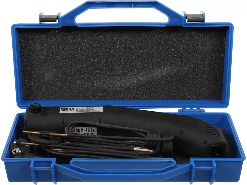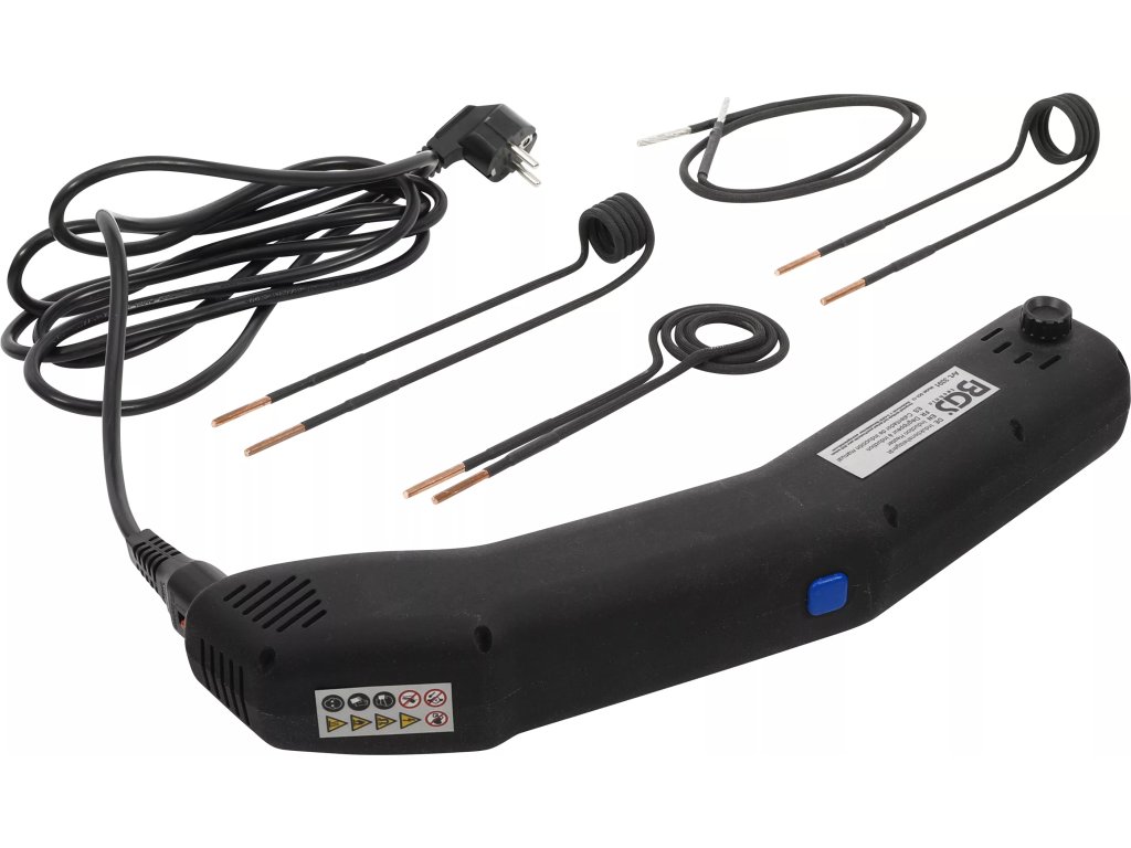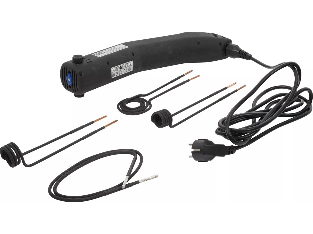 Indukční topné zařízení s LED osvětlením vhodné k rychlému a snadnému odstranění dílů z vozidel zahřátím. Vhodné například na zarezlé matice, čepy apod.
