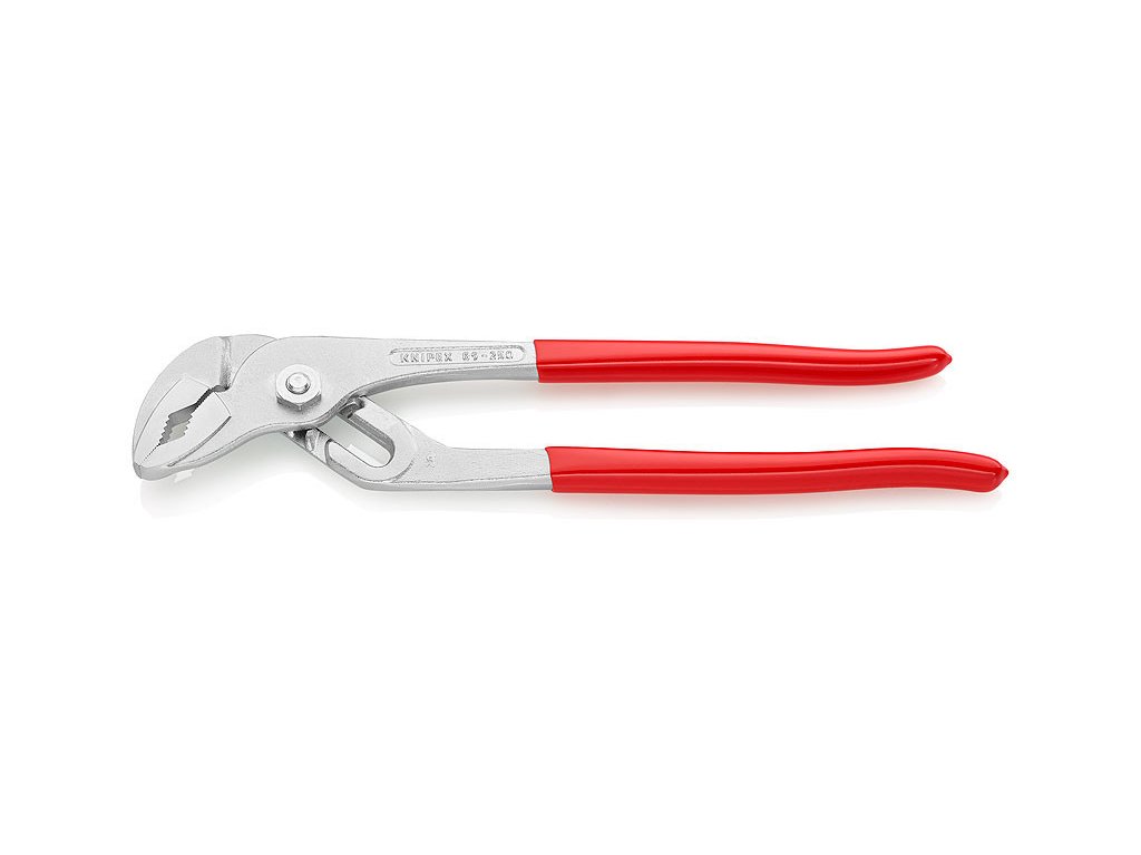 Přesně frézované vymezovací drážky umožňují nastavení v 5 polohách. Samosvorné na trubkách a maticích: žádné sklouzávání na sevřené součásti, práce šetřící síly a vynaložení menší síly. žádné proklouznutí kloubu. Hořákový otvor dobře tvarově přizpůsobený pro šrouby a matky. Konstrukční odlehčení šroubu kloubu, proto žádné opotřebení šroubu zajišťuje minimální opotřebení šroubu. Kryt chránící prsty uživatele před skřípnutím. Plochy čelistí se speciálně kalenými zuby, tvrdost zubů asi 61 HRC při délce 250 mm: spolehlivé uchopení díky vysoké odolnosti proti opotřebení. Chromvanadová elektroocel, kovaná, kalená v oleji.