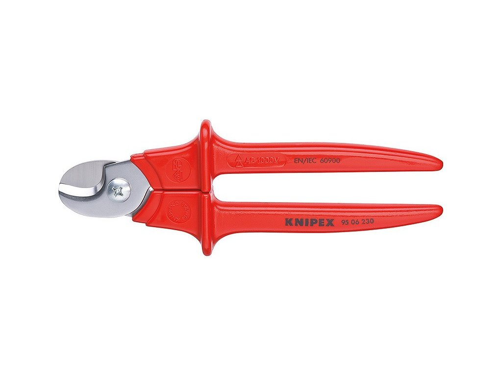 Pro řezání kabelů z Cu a Al. Není vhodné pro ocelový drát a měděné vodiče tažené natvrdo. Kalené břity s precizním výbrusem. žádné mačkání, nepatrná deformace kabelu. S ochranou proti sevření. Seřizovatelný šroubovaný kloub. Těleso nůžek: chirurgická ocel, nerezavějící, volně tvrzená. Rukojeti: plast, rázuvzdorný. Pro měděné vodiče jednožilové do 16 mm?, vícežilové do 50 mm? a s jemnými dráty do 70 mm?- pro hliníkové vodiče vícežilové 70 mm?. Snadné ustřižení při obsluze jednou rukou díky velkému převodovému poměru. Speciální nerezová ocel, kalená a popuštěná.