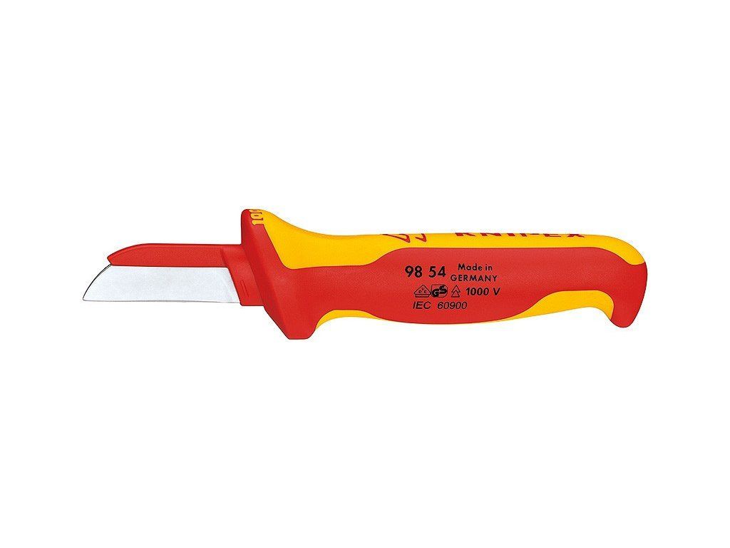 Vylepšená ergonomie díky tvaru rukojeti příjemně tvarované proti sklouznutí. Více bezpečnosti díky protiskluzové měkké vrstvě. Dobrý přenos síly při tahu nože díky prohlubni pro palec a „prstovému háčku“ na konci rukojeti. Stabilní, pevná háková čepel s rovným břitem. Průhledná ochranná krytka. čepel: speciální nástrojová ocel, kalená v oleji. Zkoušeno VDE podle DIN EN/IEC 60900 : 2004. Stabilní, pevná háková čepel s rovným břitem. čepel kalená v oleji a popuštěná. Držadlo s ochranou proti sklouznutí. Průhledná ochranná krytka. Druhá strana čepele potažená plastem k zabránění zkratů.