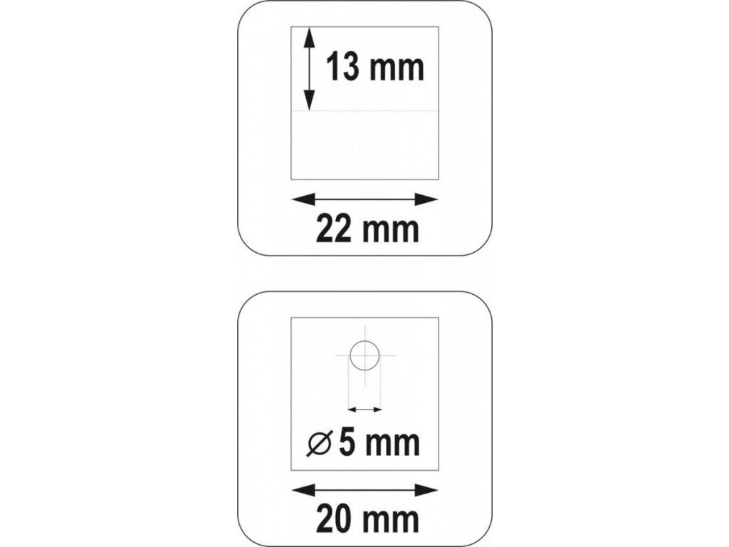 Průměr tvrzených řezných otvorů 5 mm. Plocha pro falcování - 22x13mm (šxv).