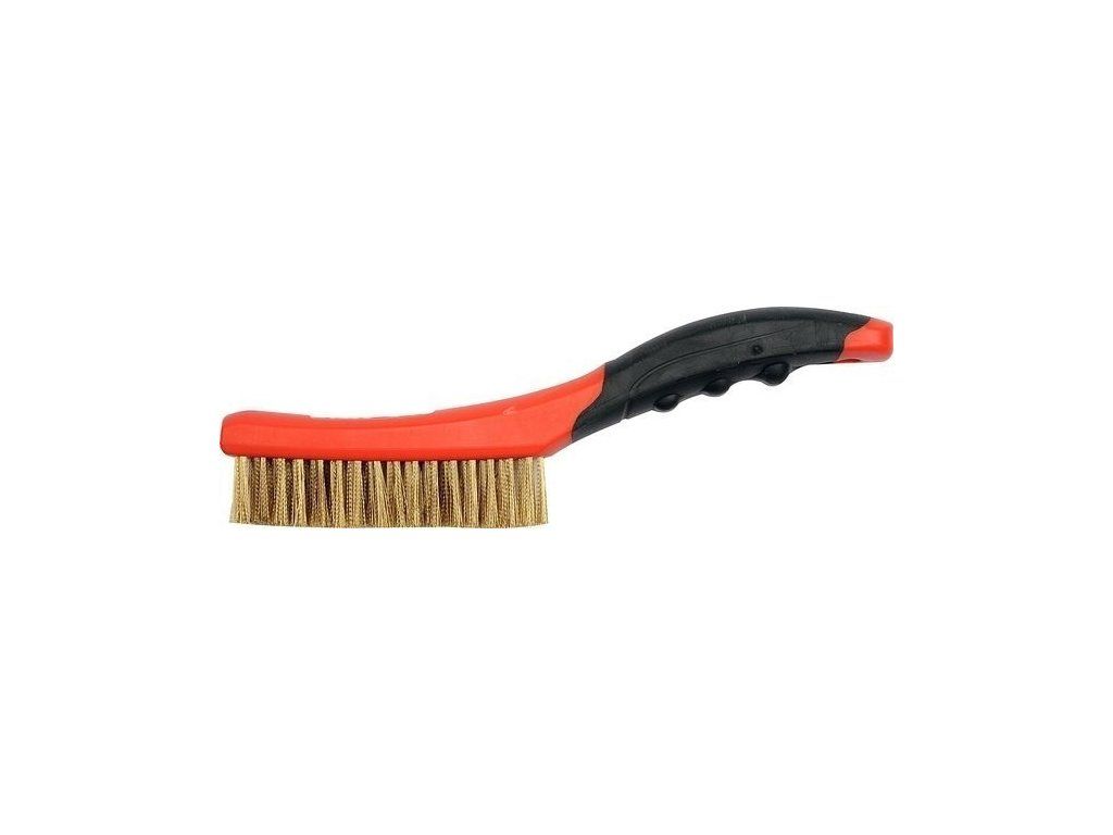 Drátěný mosazný kartáč opracování mosazi, mosazných slitin, mědi, ušlechtilých kovů, polodrahokamů, plastů, dřeva a podobně.