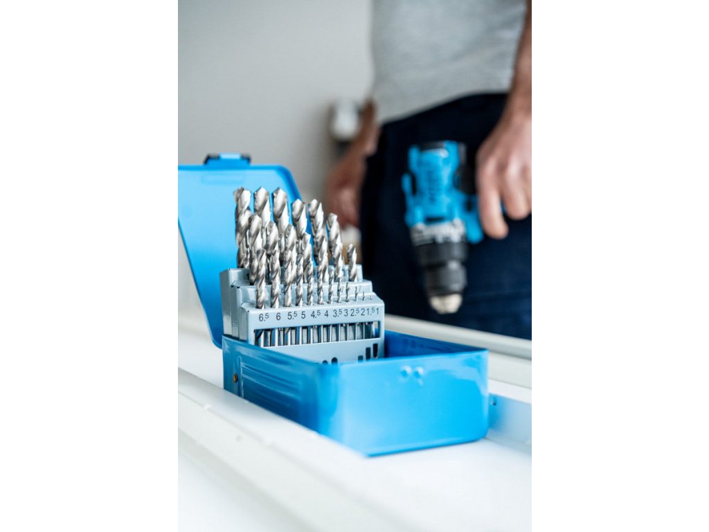 Sada obsahuje vrtáky o ø 1 - 13 mm stoupajících po 0,5 mm.