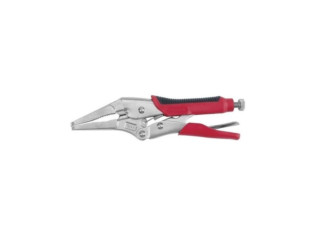 Kvalitní samosvorné kleště Yato pro svářeče, klempíře či zámečníky, s plochou dlouhou úzkou čelistí tvaru CD .