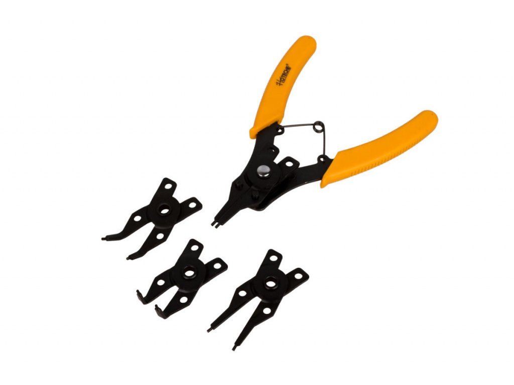 Kleště na pojistné kroužky 4v1 značky Hoteche o délce 150 mm se 4 čelistmi v sobě skrývá komplexní sadu pro montáž a demontáž pojistných kroužků. Jedny kleště Vám nahradí osmi dílnou sadu kleští a ušetří Vám nejen prostor při uskladnění.