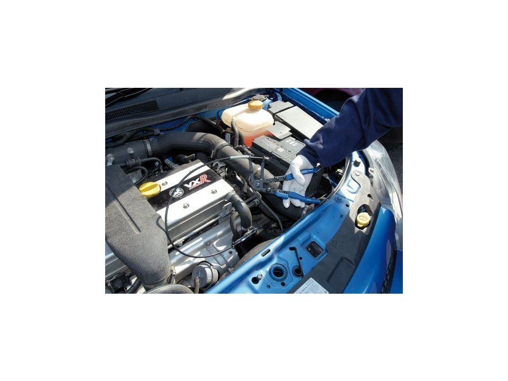 Univerzální kleště pro montáž samosvorných spon palivových, olejových a chladících systémů vozidel. Výrobek navržený pro manipulaci v těžko přístupných místech. Bowden o délce 690 mm spolu s minimální velikostí čelistí umožňuje pracovat i v prostoru nedostupným pro klasické nástroje.