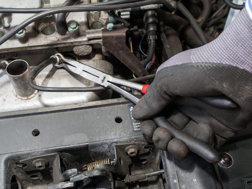 Kleště na svíčky s dvojitým kloubem ideální pro připojení a odstranění těžko přístupných konektorů zapalovacích svíček. Je také vhodný pro oddělení přívodu palivového potrubí.