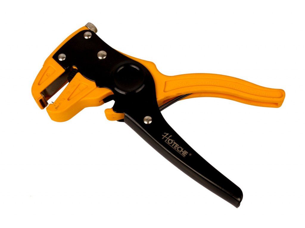 Kvalitní odizolovací kleště na kabely od značky Hoteche o velikosti 180 mm, určené na odstraňování izolace vodičů do průměru 8 mm. Kleště jsou také vybaveny břitem pro přeštípnutí nebo naštípnutí kabelu.