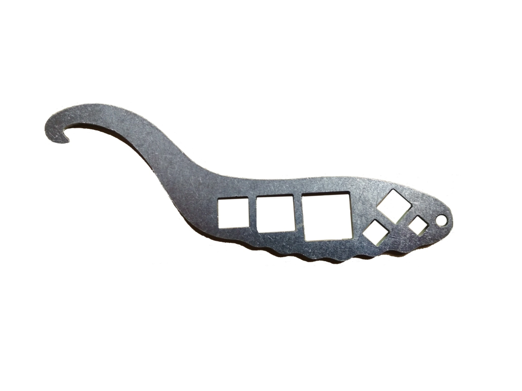 Univerzální klíč je vhodný k pohotovému použití k upevňování a uvolňování spojek a otevírání a uzavírání různých uzávěrů armatur, lze zavěsit na opasek díky oku v klíči.