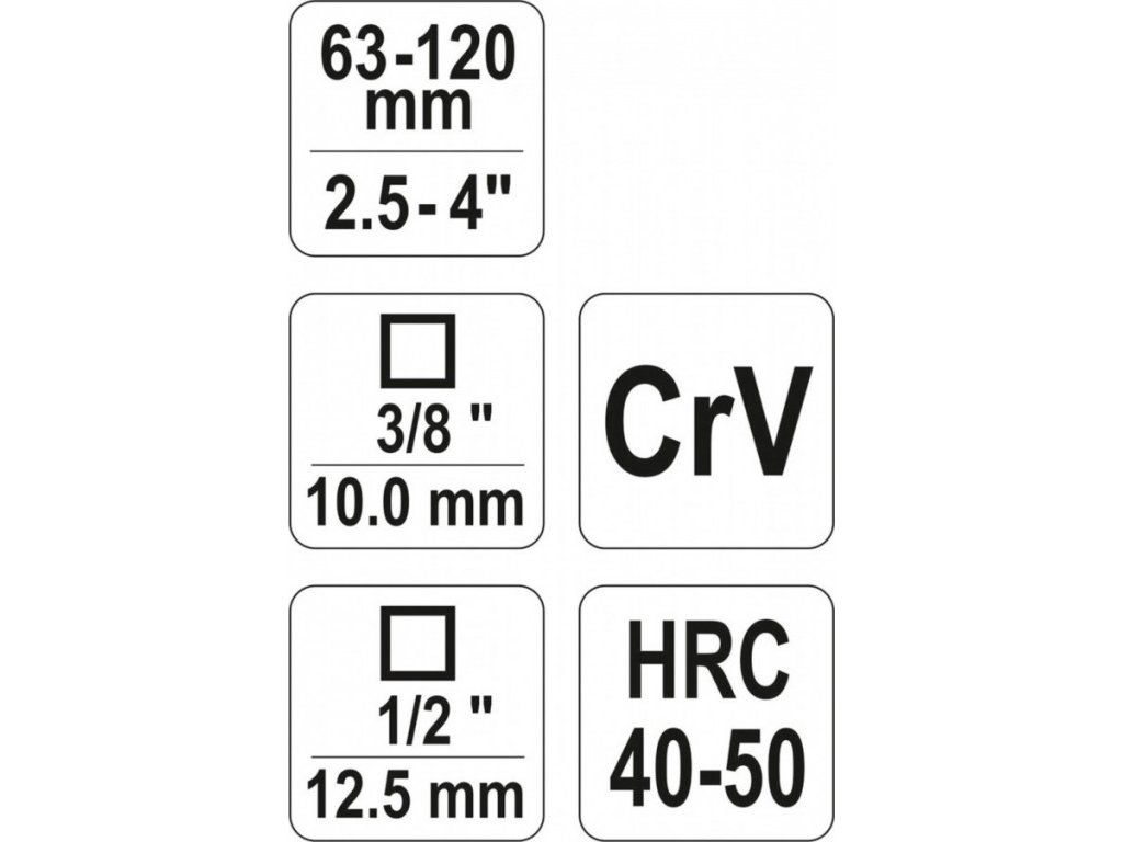 Klíč je zhotoven z CrV oceli s pevností 40-50 HRC. Pro povolování a utahování se využije zakončení 1/2", nebo 3/8".