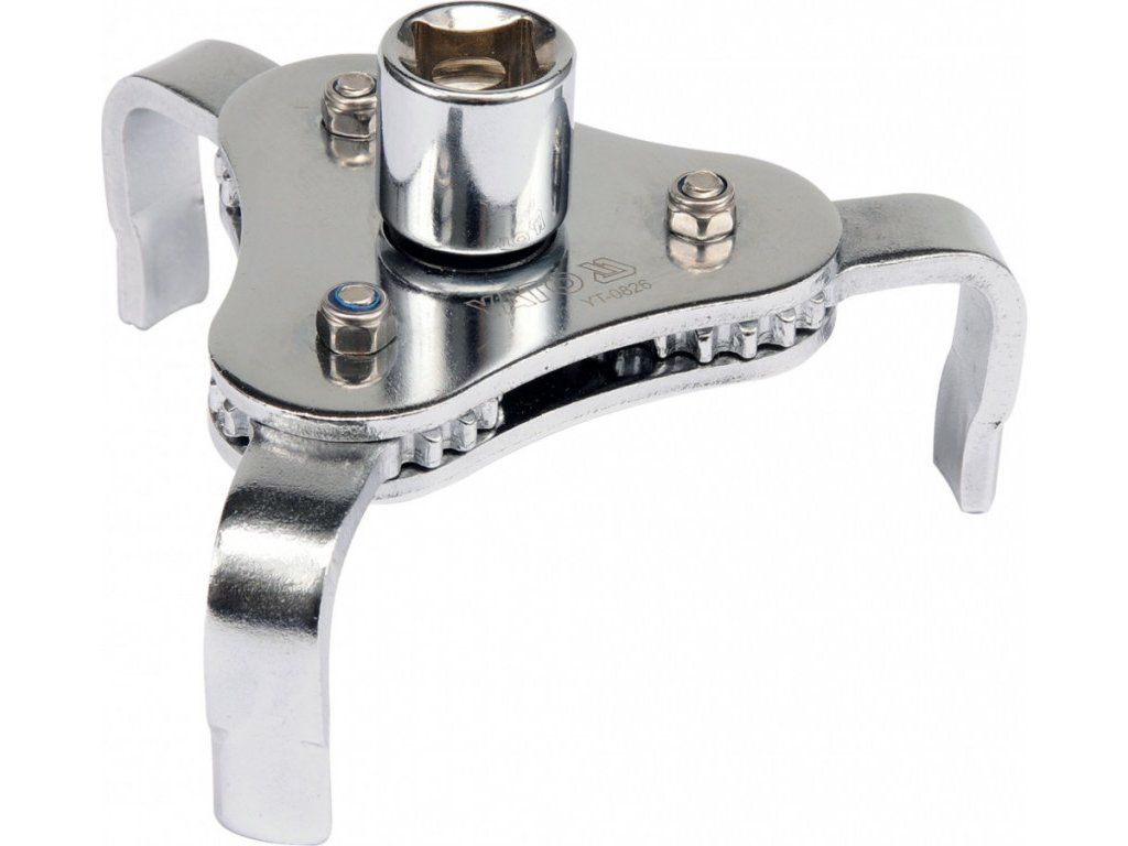 Tříramenný klíč na olejové filtry je speciální klíč s velmi účinným systémem povolování součástí kruhového i nepravidelného tvaru v rozmezí průměru 63 - 120 mm.
