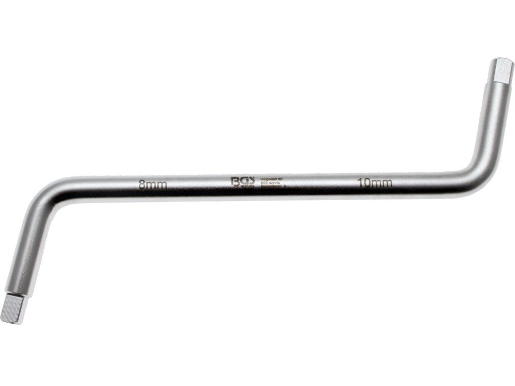Oboustranný klíč pro vypouštěcí šrouby olejových van, čtyřhran 8 a 10 mm.