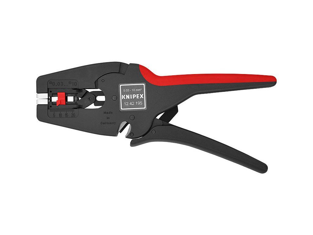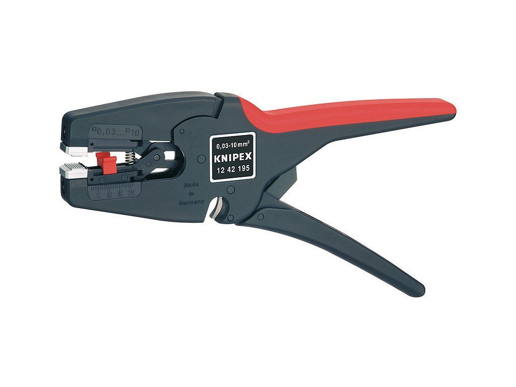 Odizolování bez dodatečného seřízení od 03 do 10 mm?. Univerzální geometrie nožů - robustní a s dlouhou životností. Optimální tvarování rukojetí pro vynikající manipulaci. Ve spodu kleští umístěné nůžky na dráty. Plně automatické přizpůsobení všem jednovodičovým i vícevodičovým kabelům a kabelům s jemnými dráty se standardní izolací v celém kapacitním rozsahu 03 až 10 mm?. Není nutné jemné ruční nastavování. Nedochází k poškození vodičů. Upínací čelisti z oceli přidrží kabel bezpečně tak, aby nesklouzl, aniž by se poškodila zbývající izolace. Ve spodu kleští umístěné nůžky na stříhán kabelů z Cu a Al, vícevodičových do 10 mm? a jednovodičových do 6 mm?. Mimořádně lehký chod mechanismu a velmi nízká hmotnost. Výměnný nožový blok a délkový doraz. Rukojeť se zónou z měkkého plastu pro bezpečné uchopení. Těleso: plast, vyztužen optickými vlákny. Nůž: speciální nástrojová ocel, kalená v oleji.