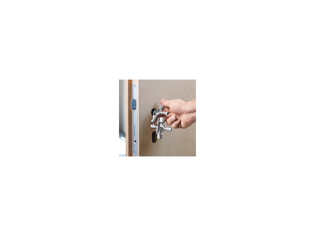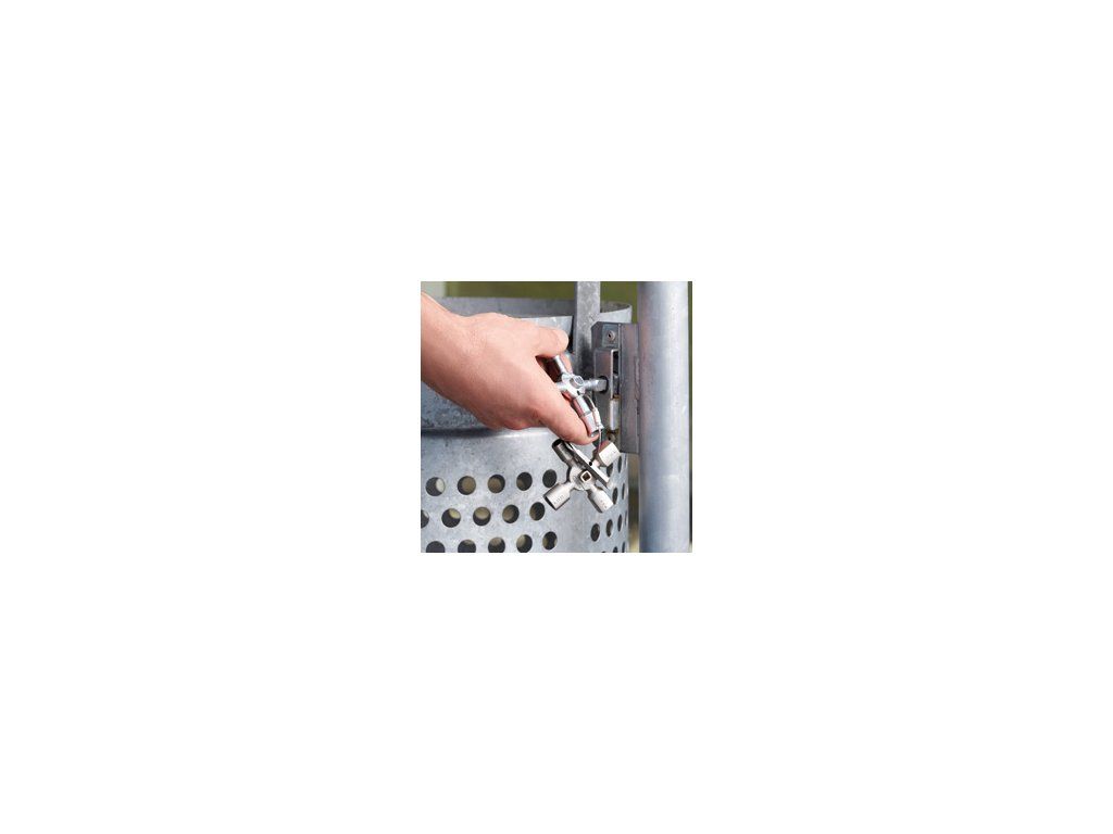 - Multifunkční klíč pro ovládání uzávěrů z oblasti techniky budov (topení a sanitární zařízení, klimatizační a větrací technika, elektrotechnika), zásobování plynem a vodou a uzavíracích systémů