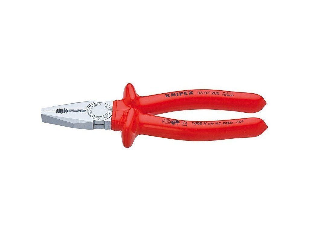 Kvalitní kombinované kleště Knipex, s břity pro měkký i tvrdý drát, speciální nástrojová ocel, délka 180 mm.
