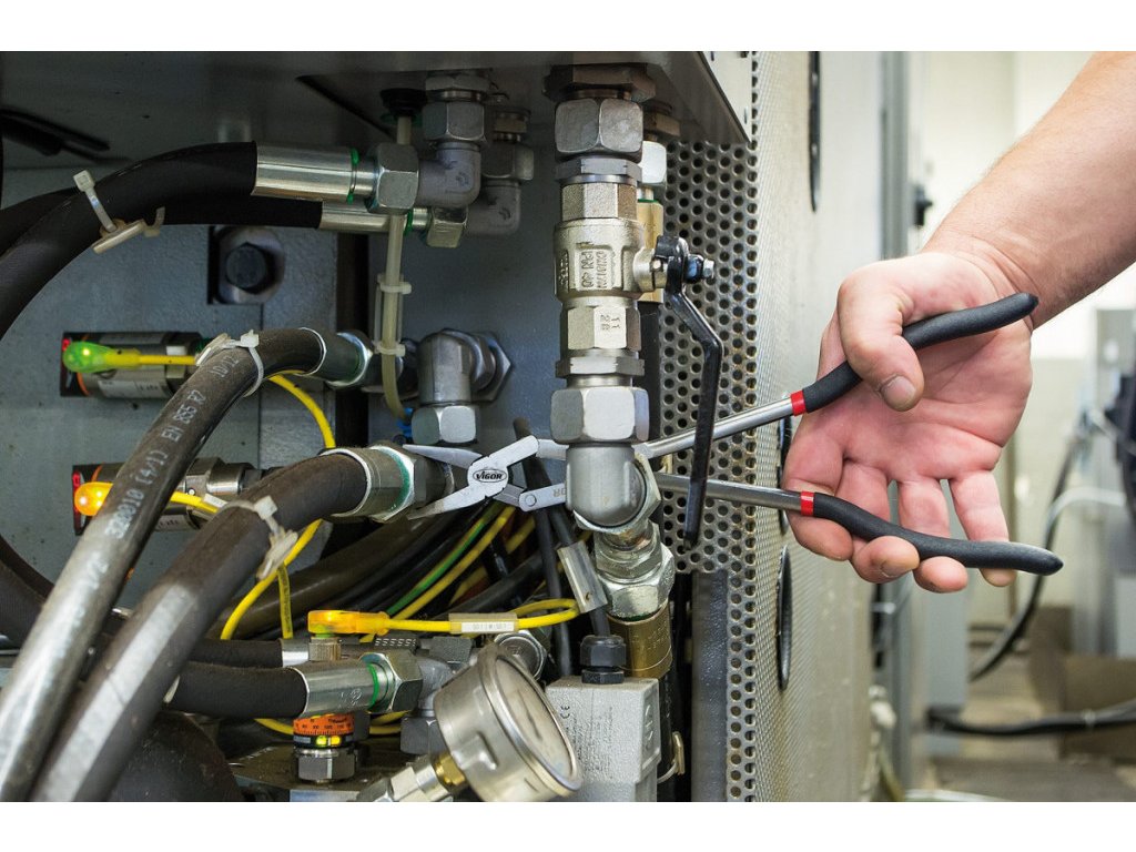 Prodloužené kombinované kleště s dvojitým kloubem jsou vyrobeny ze speciální oceli. Jsou extrémně úzké, mají délku 300 mm a ergonomické rukojeti, což umožňuje vysoký přenos síly na čelisti. Používají se jak pro přidržování, tak i pro štípání zejména v obtížně přístupných místech.