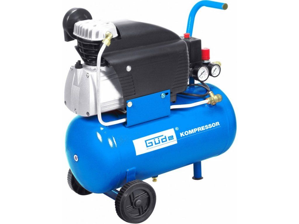Tlaková nádoba: 24 l, ventil pro vypouštění kondenzátu, přední podpěra s gumovou patkou, plastová kola/transportní madlo pro jednoduchou manipulaci.