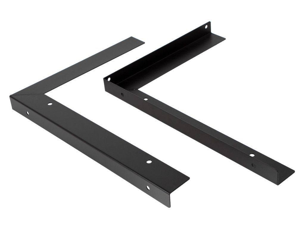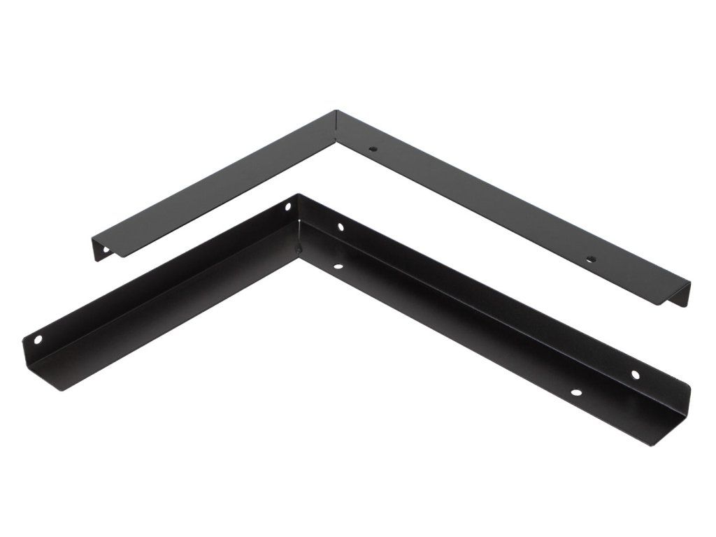 Kovové podpěry pod pracovní desku. Vhodné pro krajní přesahy desky bez opory. Rozměry 450×330,5×32 mm, hmotnost 1,5 kg.