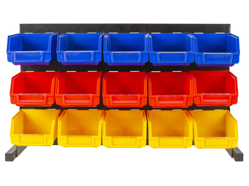 Kovový rám organizéru s 15 plastovými boxy pro dokonalou organizaci. Rozměry: 530 x 254 x 330 mm (Š x H x V).