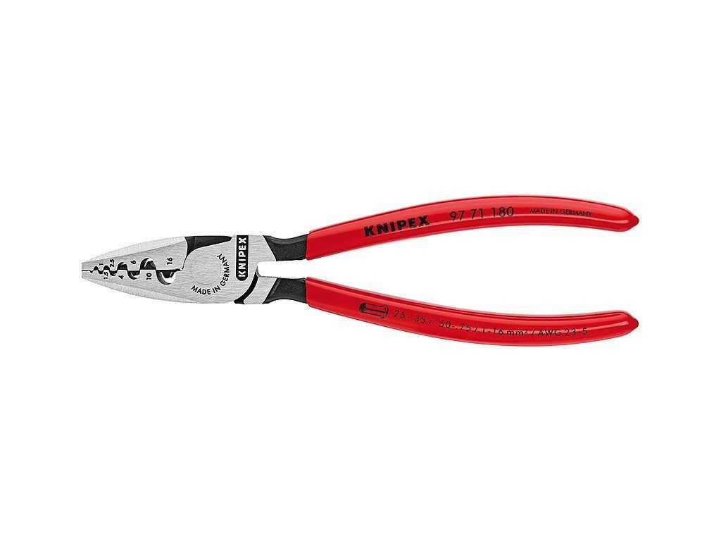Také jako verze VDE. Optimalizovaný pákový přenos pro snadnější lisování. Lehká a úzká štíhlá konstrukce. K lisování dutinek podle DIN 46228 část 1 + 4 v rozsahu 0,25 do 16 mm?. Lisování do označených půlkulatých profilů pro spolehlivé spojení dutinky a vodiče. 9 obzvláště hlubokých profilů s kuželovými bočními plochami. Speciální nástrojová ocel, kovaná, kalená v oleji.