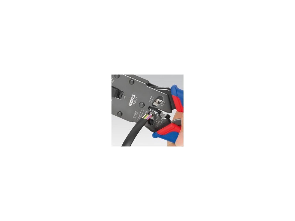 Profilovaný nástroj ke stříhání a odstraňování plášťů plochých nestíněných telefonních kabelů. K lisování 4-, 6- a 8-pólových konektorů Western Typ RJ 10 (širokých 7,65 mm) Typ RJ 11/12 (širokých 9,65 mm) a Typ RJ 45 (širokých 11,68 mm). Přesné lisování díky paralelnímu lisování. Konstantně vysoká kvalita lisování díky nucenému blokování (možné odblokovat). Zvětšení síly díky lomené páce pro snížení únavy při práci. S odstřiháváním délky a nožem pro odstraňování plášťů plochých kabelů délky 6 a 12 mm. S doplňkovou funkcí odizolování kabelů kruhového průřezu. Chromvanadová elektroocel ve zvláštní jakosti, kalená v oleji. Zvětšení síly díky pákovému převodu pro snížení únavy při práci. Konstantně vysoká kvalita lisování díky nucenému blokování (možné odblokovat). Profilovaný nástroj ke stříhání a odstraňování plášťů plochých nestíněných telefonních kabelů. Přesné lisování díky paralelnímu lisování. S odstřiháváním délky a nožem pro odstraňování plášťů plochých kabelů délky 6 a 12 mm. Hlava brunýrovaná, rukojeti s dvoubarevnými vícesložkovými plastovými návleky. K lisování 4-, 6- a 8-pólových konektorů Western Typ RJ 10 (širokých 7,65 mm) Typ RJ 11/12 (širokých 9,65 mm) a Typ RJ 45 (širokých 11,68 mm).