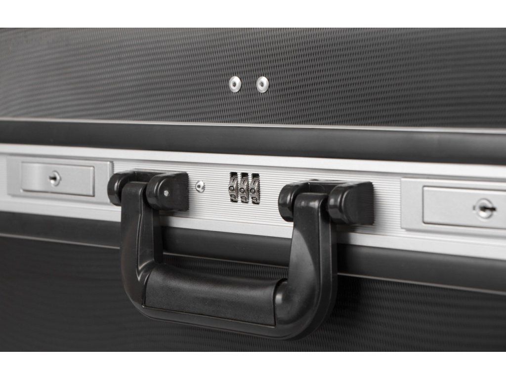 Kufr na nářadí o rozměrech (š x h x v): 480 x 360 x 240 mm. Kufr je lehce přenosný díky kolečkům a teleskopickému madlu.