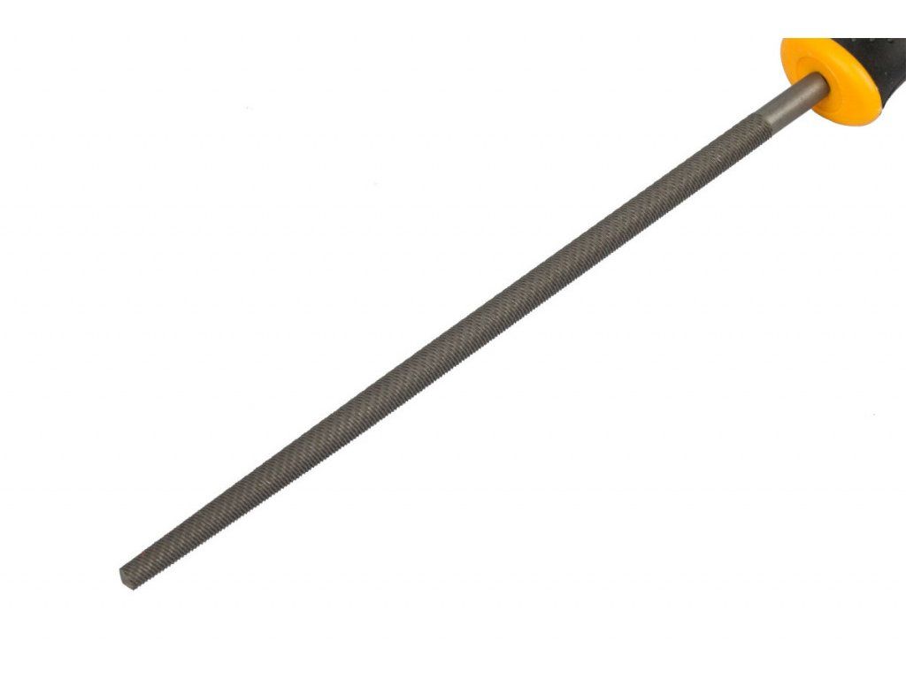 Kulatý pilník na kov, materiál: Cr-V, plast, délka pilníku 200 mm, 120 g. Ergonomická rukojeť.