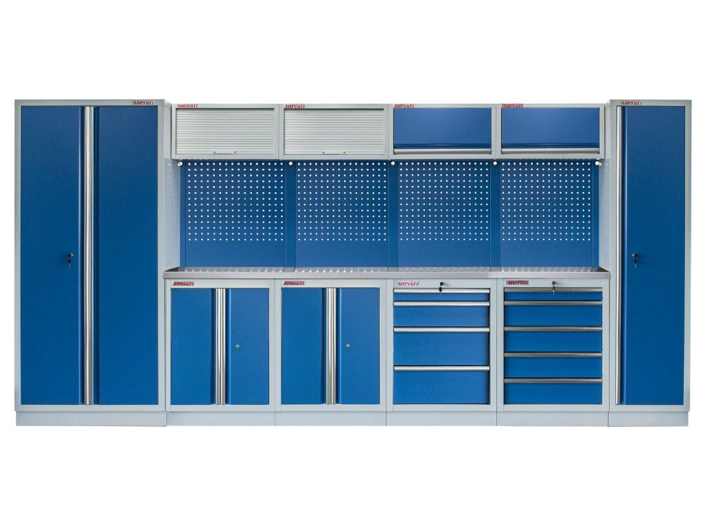 Sestava nábytku v sobě skrývá dostatečné množství úložného prostoru pro vaše nářadí, autotechniku i dílenské vybavení. V kombinaci s bytelnou pracovní deskou získáte multifunkční stěnu, se kterou vám půjde práce od ruky ve všech směrech.