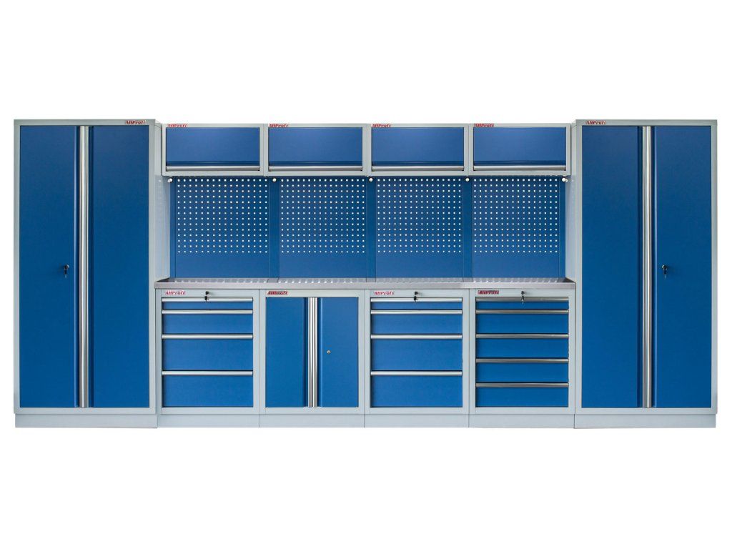 Sestava nábytku v sobě skrývá dostatečné množství úložného prostoru pro vaše nářadí, autotechniku i dílenské vybavení. V kombinaci s bytelnou pracovní deskou získáte multifunkční stěnu, se kterou vám půjde práce od ruky ve všech směrech.