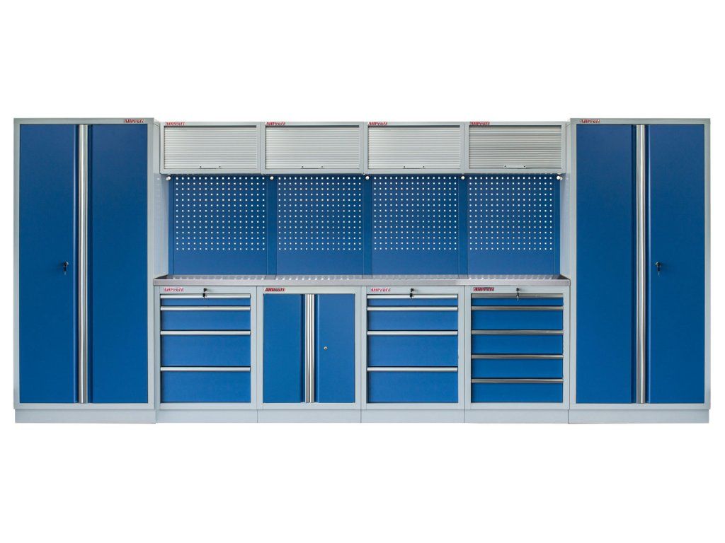 Sestava nábytku v sobě skrývá dostatečné množství úložného prostoru pro vaše nářadí, autotechniku i dílenské vybavení. V kombinaci s bytelnou pracovní deskou získáte multifunkční stěnu, se kterou vám půjde práce od ruky ve všech směrech.