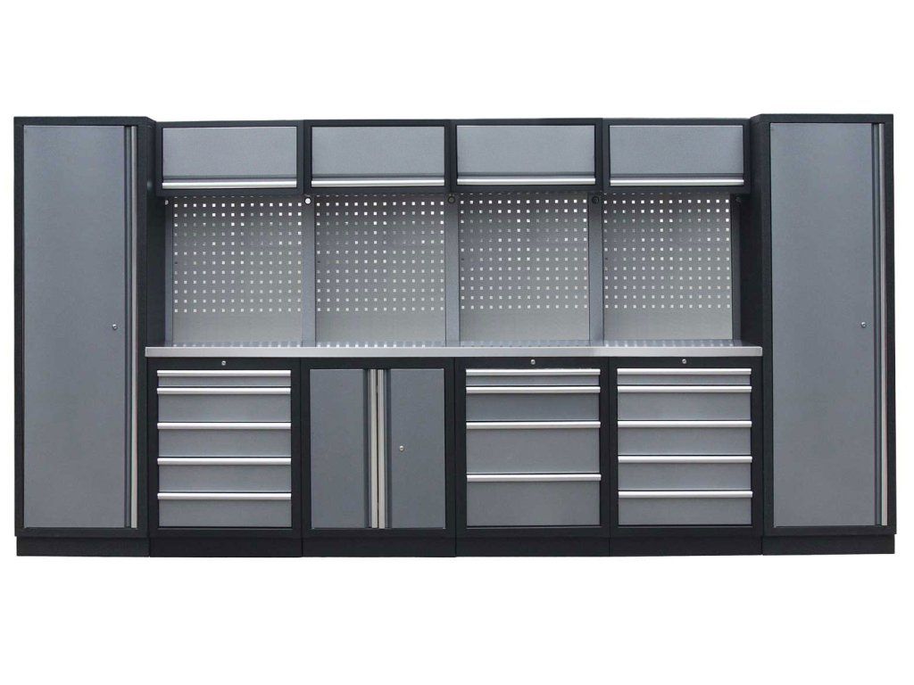 Sestava nábytku v sobě skrývá dostatečné množství úložného prostoru pro vaše nářadí, autotechniku i dílenské vybavení. V kombinaci s bytelnou pracovní deskou získáte multifunkční stěnu, se kterou vám půjde práce od ruky ve všech směrech.