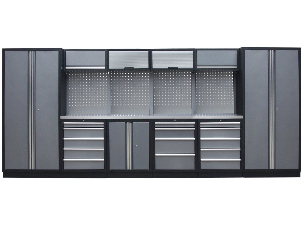 Sestava nábytku v sobě skrývá dostatečné množství úložného prostoru pro vaše nářadí, autotechniku i dílenské vybavení. V kombinaci s bytelnou pracovní deskou získáte multifunkční stěnu, se kterou vám půjde práce od ruky ve všech směrech.