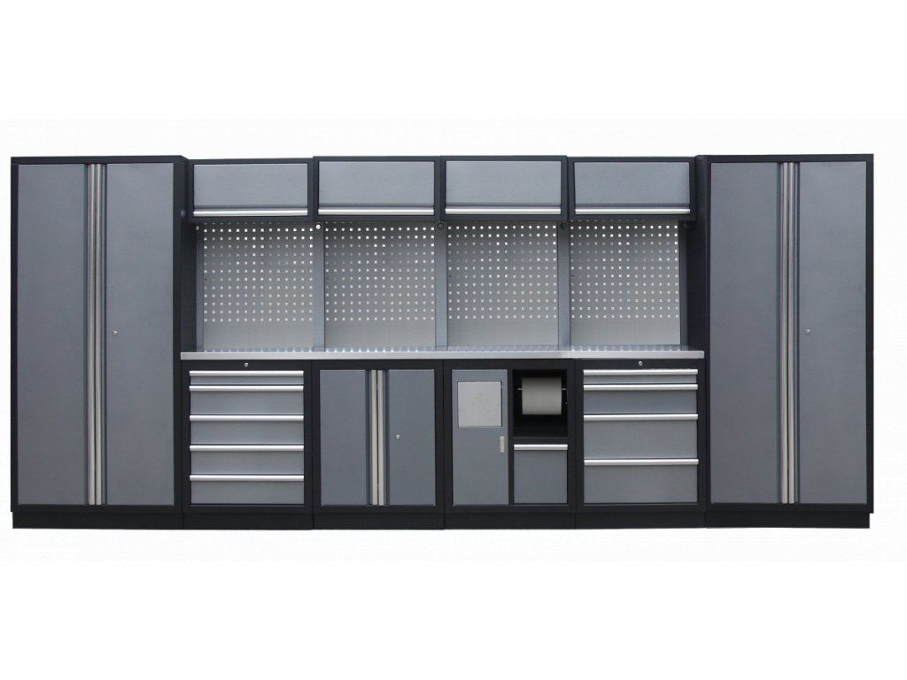 Sestava nábytku v sobě skrývá dostatečné množství úložného prostoru pro vaše nářadí, autotechniku i dílenské vybavení. V kombinaci s bytelnou pracovní deskou získáte multifunkční stěnu, se kterou vám půjde práce od ruky ve všech směrech.