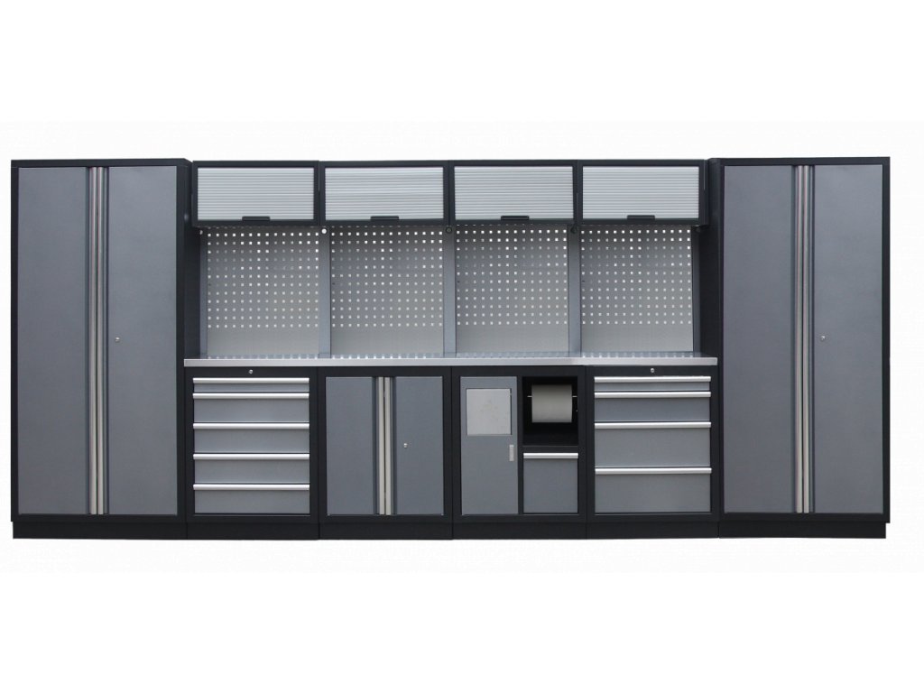 Sestava nábytku v sobě skrývá dostatečné množství úložného prostoru pro vaše nářadí, autotechniku i dílenské vybavení. V kombinaci s bytelnou pracovní deskou získáte multifunkční stěnu, se kterou vám půjde práce od ruky ve všech směrech.