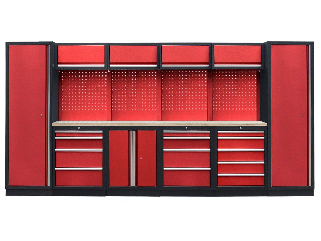 Sestava nábytku v sobě skrývá dostatečné množství úložného prostoru pro vaše nářadí, autotechniku i dílenské vybavení. V kombinaci s bytelnou pracovní deskou získáte multifunkční stěnu, se kterou vám půjde práce od ruky ve všech směrech.