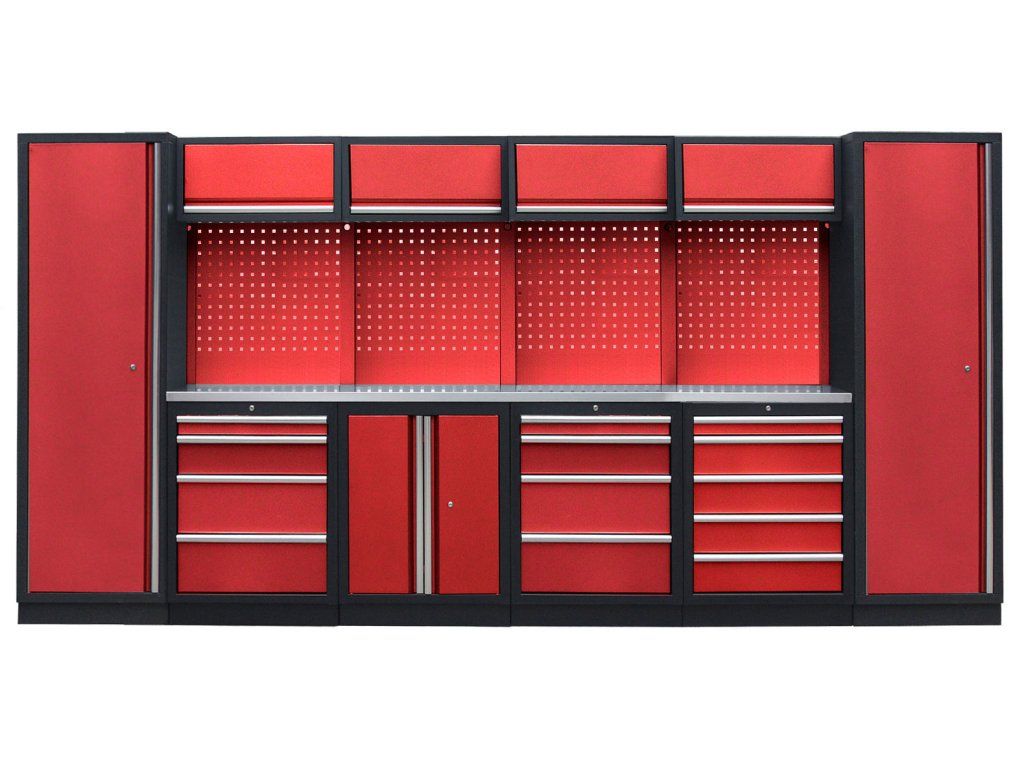 Sestava nábytku v sobě skrývá dostatečné množství úložného prostoru pro vaše nářadí, autotechniku i dílenské vybavení. V kombinaci s bytelnou pracovní deskou získáte multifunkční stěnu, se kterou vám půjde práce od ruky ve všech směrech.
